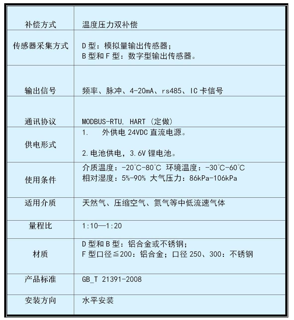 D型/ B型適合計(jì)量天然氣、氮?dú)狻?氫氣、壓縮空氣等潔凈的中低流速氣體。F型適合貿(mào)易計(jì)量天然氣、氮?dú)狻錃狻嚎s空氣等潔凈 的中低流速氣體